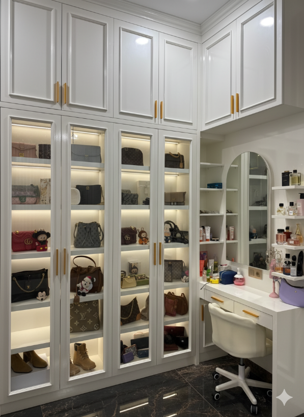 istri punya koleksi tas yang cukup banyak, setelah di buatkan lemari khusus tas nya dia senang sekali, dan saya pun bahagia